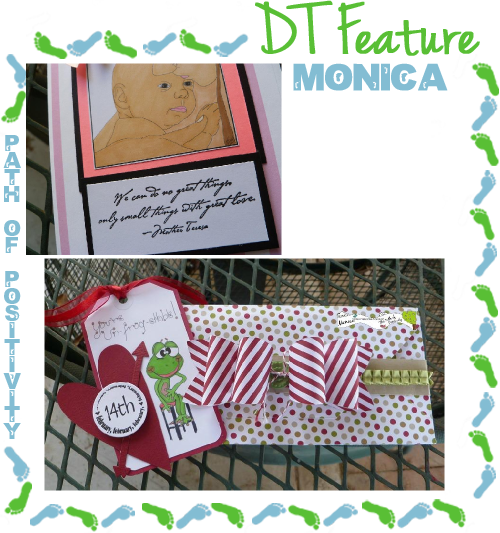 Here is a closer view of that beautiful baby and the lovely sentiment that Monica used. Additionally, here is an overall view of Monica's first project...