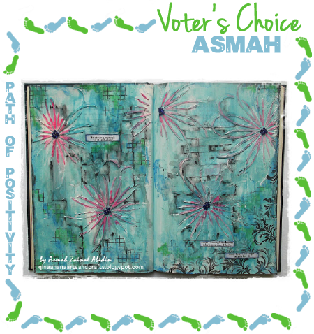 "My DT Delight is Asmah. Asmah's journal page is so beautiful full of color and texture! The quote is so true and the best way to gain prosperity is through independence, intelligence and bravery! Asmah said she learned this from her mother,"
